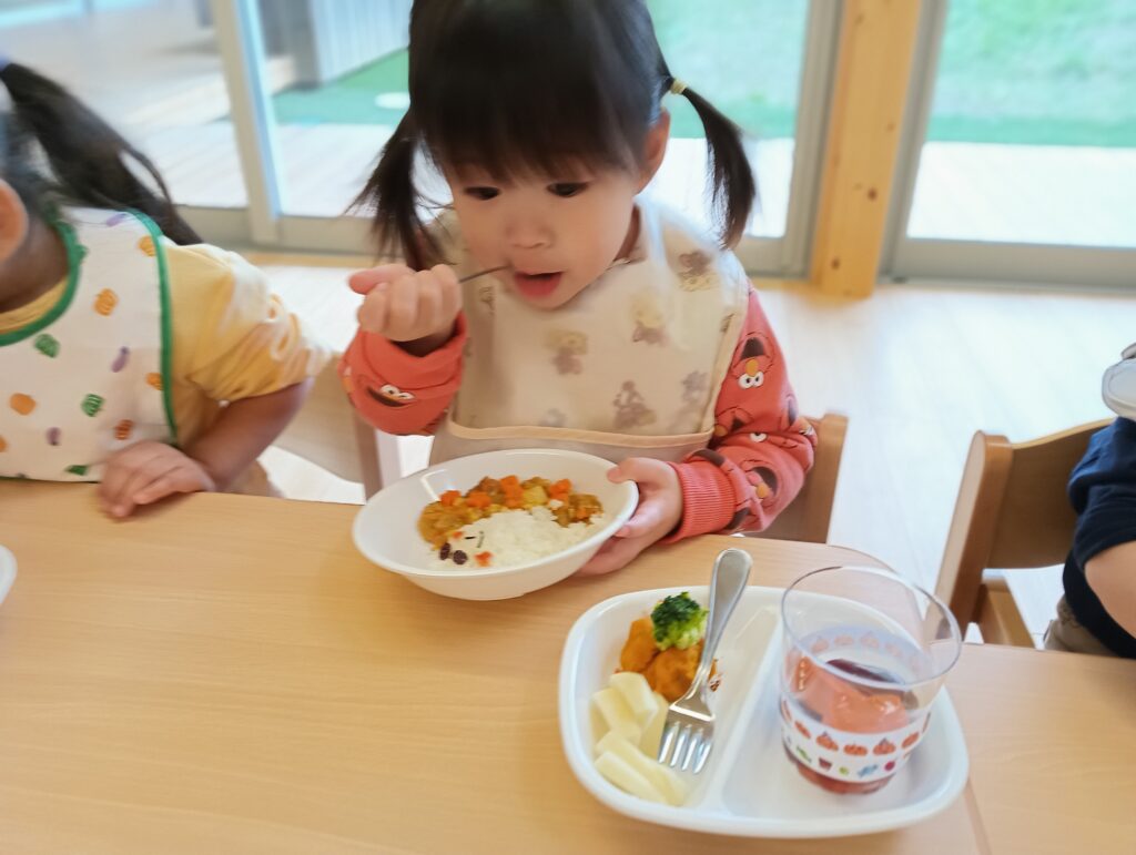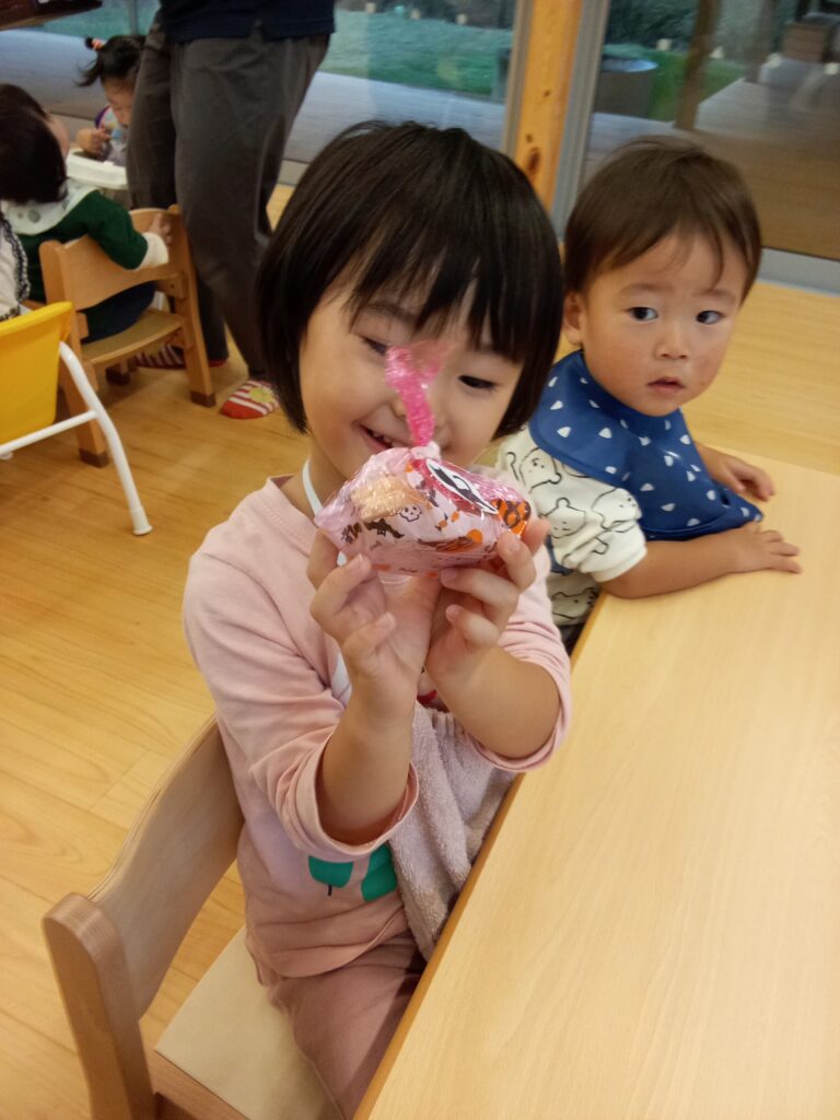 10月31日、保育園ではハロウィン特別メニューの給食とおやつをいただきました!